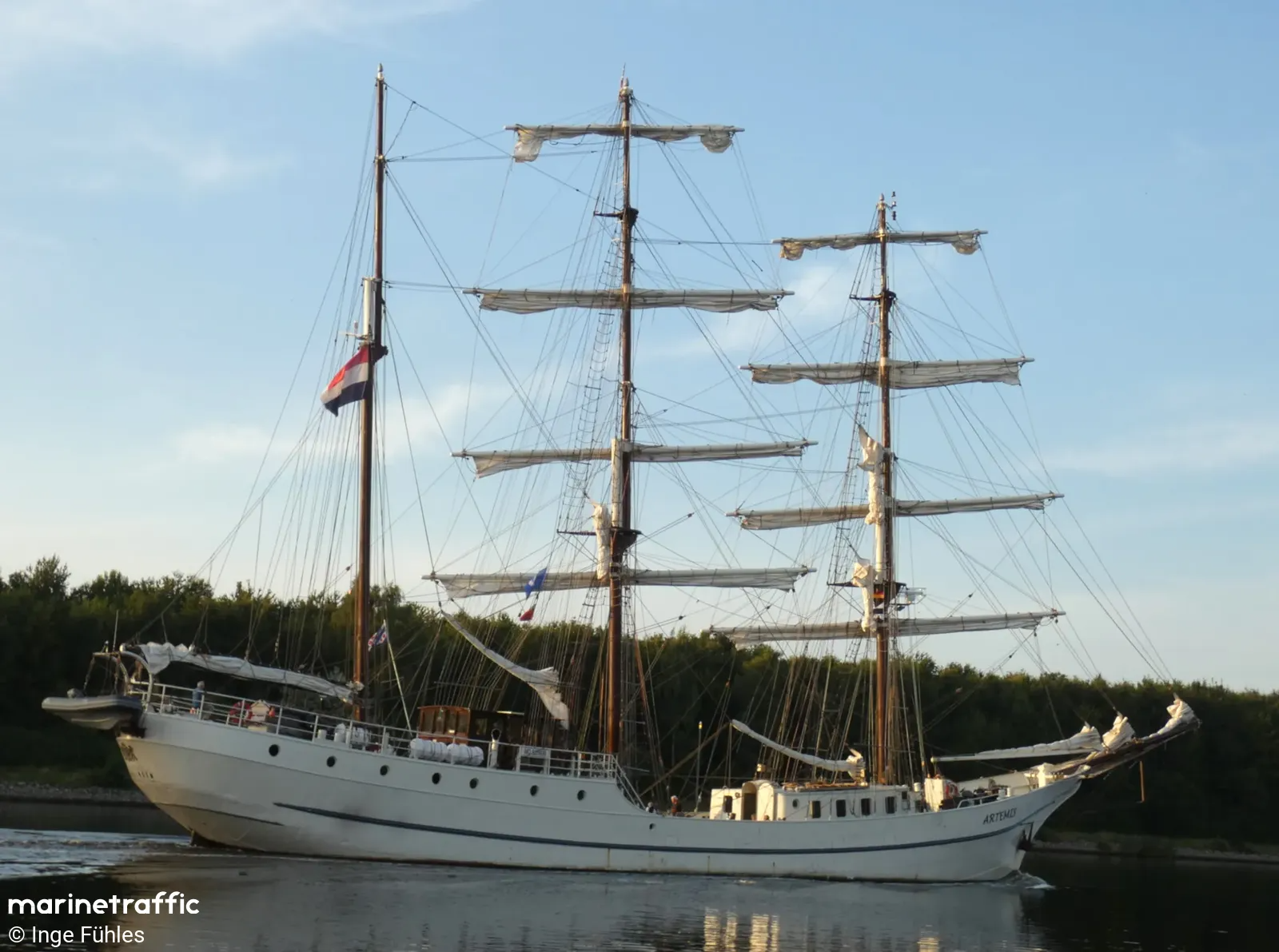 On October 4, the 59 meter long 3-masted sailing vessel Artemis (IMO: 5209699) allided on the North Sea at the port of Harlingen, Netherlands. The Artemis was pushed by strong winds into the quay sustaining some damage to its port hull.  Machinery was used to keep the sailing ship off the quay until fenders could be deployed. No reports of injuries or pollution released.