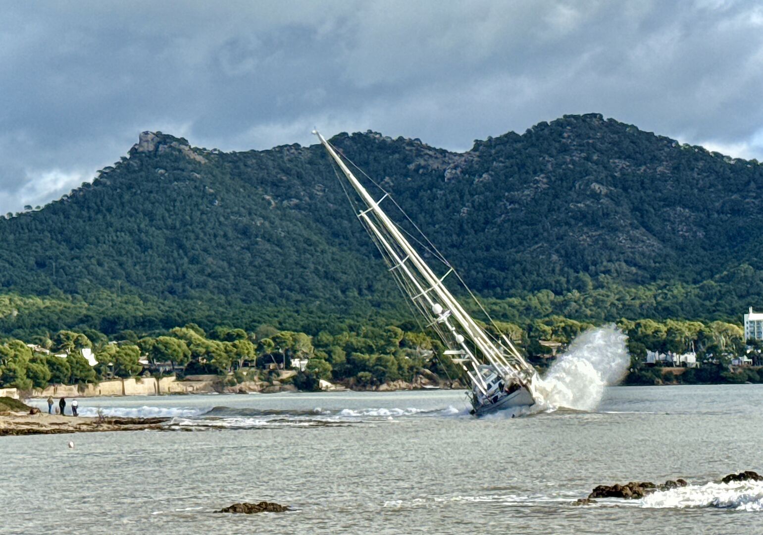 On January 21, the 24 meter long, 90 ton sailing yacht Acoa (MMSI: 232017725) went aground in the Balearic Sea near Playa de Marica, Costa de Los Pinos, Mallorca, Spain. The Acoa had been blown ashore by the strong winds from cyclone Harry with gusts up to 80 kilometers per hour. The Acoa sustained some hull damage as it stranded on a rocky shoreline and being worked by the strong surf.