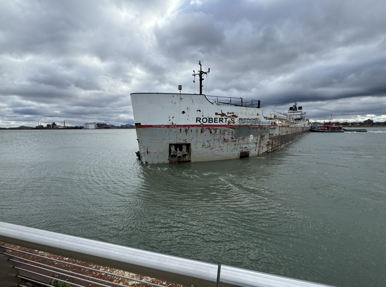 On the evening of November 26, the 192 meter long, 20236 dwt self-unloading bulk carrier Robert S. Pierson (IMO: 7366403) ran aground on the Detroit River south of Belle Isle along the shoreline of William Milliken State Park, Michigan. The Robert S. Pierson departed from Windsor, Ontario with 18,000 tons of stone bound for Lorain, Ohio when it stranded in the mud some 30 feet off the shoreline.