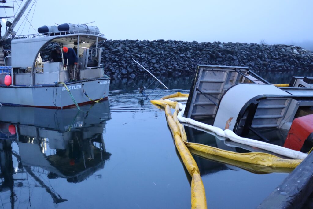 On the morning of December 4, the 27 meter long fishing vessel Pavlof (MMSI: 338132058) sank in the Chilkat Inlet within the harbor of Haines, Alaska. Harbor authorities were alerted finding the Pavlof resting on the bottom on its port hull. Booms were placed around the partially sunk hull to help contain some of the 1300 gallons of diesel fuel onboard. Staff would continued to help secure the vessel as it disconnected the electrical and connections to free the vessel. Work continued well into the evening with divers attaching lines to the hull and connecting the fishing vessel to a barge.